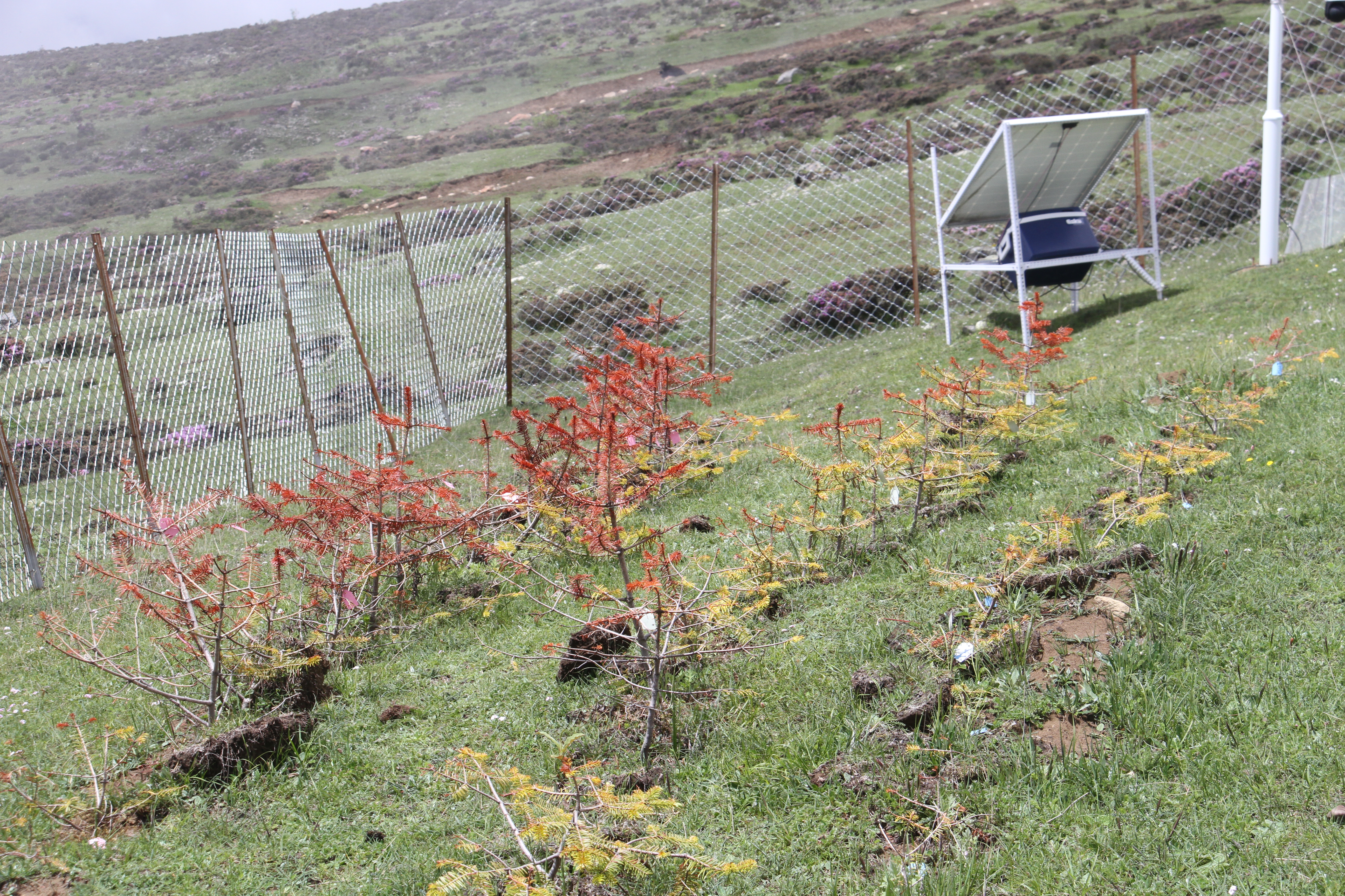 What followed was three years of patience and persistence. The non-growing season on the Sygera Mountains is harsh and long; from November to May, deep snow blankets the landscape, and temperatures often plunge below –15°C. Each spring, as soon as the snow began to melt, we’d climb back up, often digging through lingering snowdrifts to check on each seedling. Finding seedlings withered by frost was always a sobering moment—every loss mattered for the integrity of our data. Maintaining our weather stations was another challenge. Under the intense high-elevation solar radiation, equipment aged quickly. We made quarterly trips to inspect and recalibrate sensors, ensuring continuous records of temperature, humidity, and radiation. At one point, we realized that our weather instruments were positioned 1.5 meters high—far above the seedlings, which stood less than 50 cm tall. It was a small but meaningful lesson: in high-altitude ecology, the finest scales matter, and we must measure conditions where life actually unfolds.